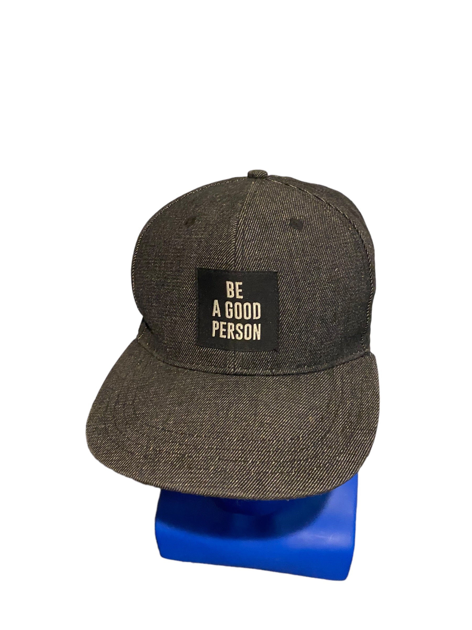 be a good person box patch black denim snapback hat